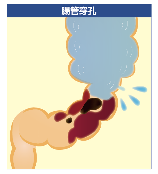 次の症状があらわれ、腸閉塞・腸管穿孔を疑った場合は直ちに内服を中止し、腹部CT検査や緊急外科手術が行える高度医療機関に連絡してください