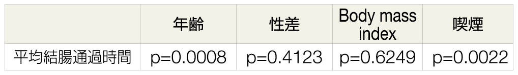 年齢、性差、BMIおよび喫煙が消化管運動に与える影響